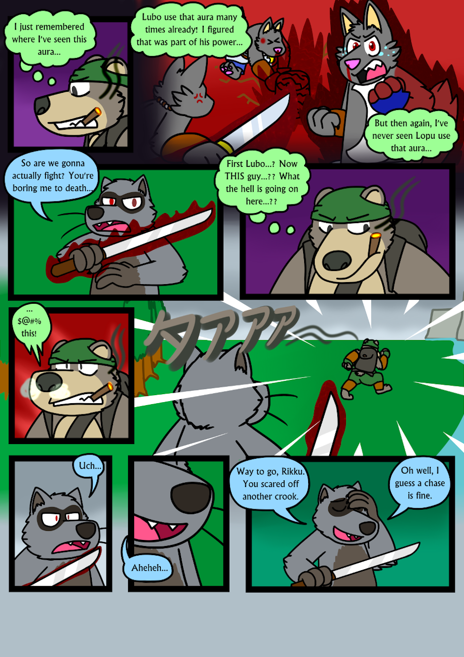 Rion's samurai group and Kuro's police squad chase after Usaro in the forest. Rikku challenges Usaro for the first time to see what he can do.