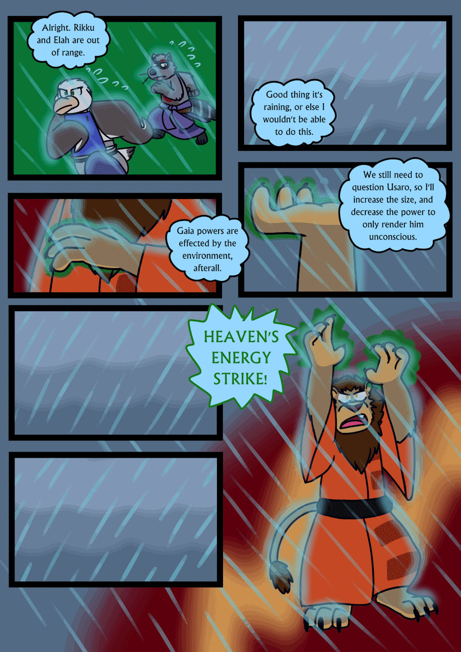 Rion's samurai group and Kuro's police squad chase after Usaro in the forest. Rikku challenges Usaro for the first time to see what he can do.