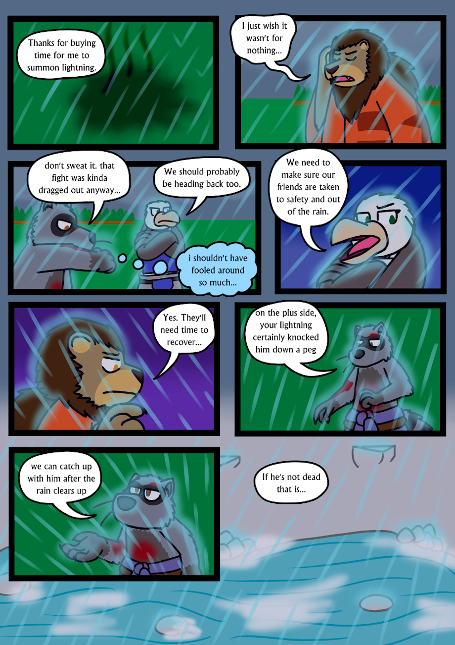 Rion's samurai group and Kuro's police squad chase after Usaro in the forest. Rikku challenges Usaro for the first time to see what he can do.