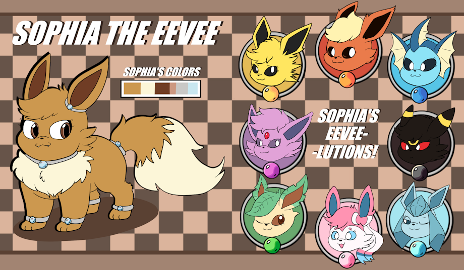 Sophia is an Eevee with the ability to evolve at will into whatever eeveelution that she wants for a while at the expense of her own energy and change back whenever she wants.
