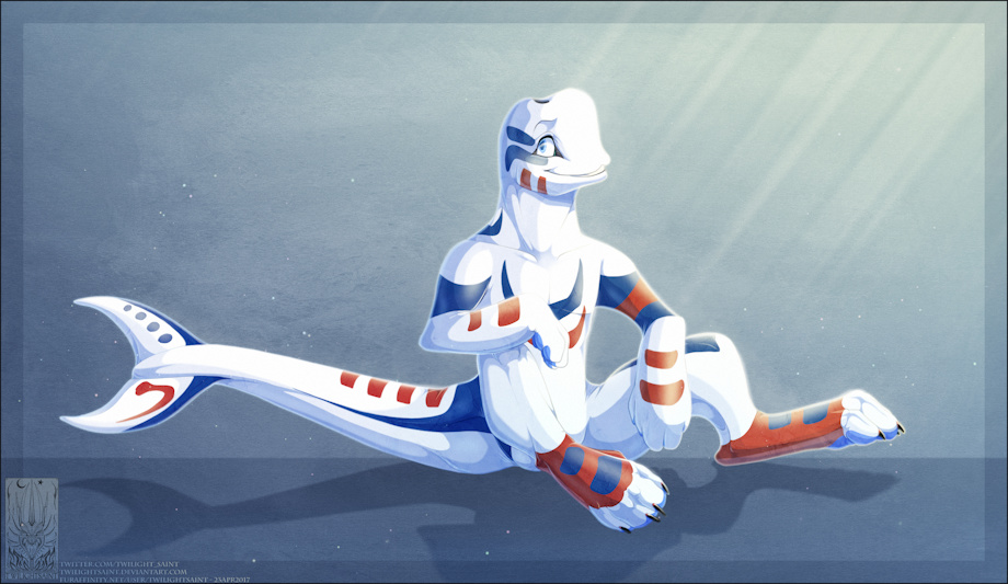 Cell Shaded piece showcasing my Beluga Whale character, Naluark, taking a much-needed rest in between one of his long-distance swims.