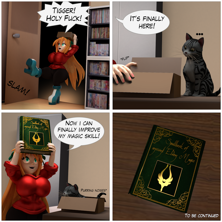 Genuine because it uses Elven language. Bootleg because the author of the book didn't know what the symbols meant and just rolled with it. Finally some movement with Felicia's story, kinda. Originally she was browsing the internet and would've stumbled on this book being for sale, labeled as a DnD-like prop book with "Real Elven Texts". Then this comic would've appeared on the next one. But I just skipped the first one.