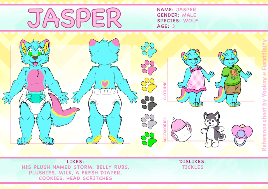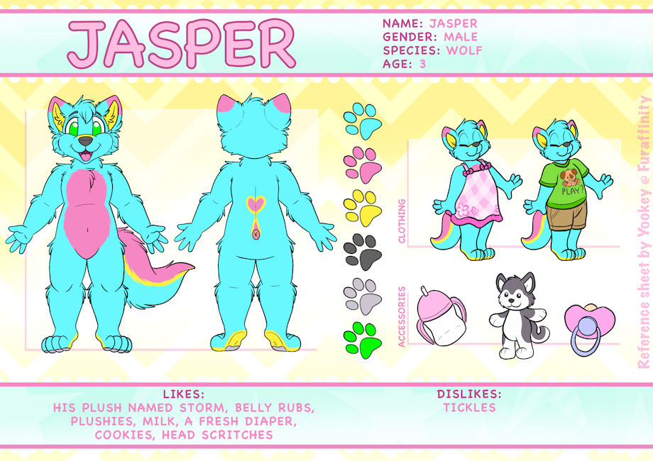 Likes: Belly rubs and scritches, Having a fresh diaper after a change, Plushies, Milk