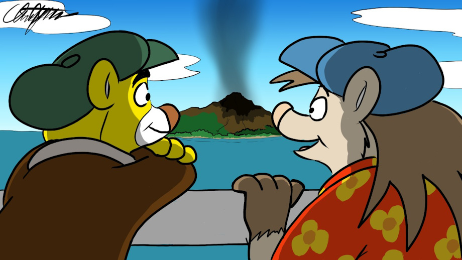 Bobby and Dipper catch a glimpse of a smoldering volcano on the cruise they're on.