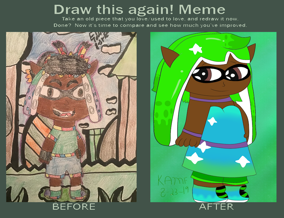 Anyway this is before I improved, the old art on the left is my ewww old art. That is before I improved. I used to make that kind of Splatoon art. But I improved now.