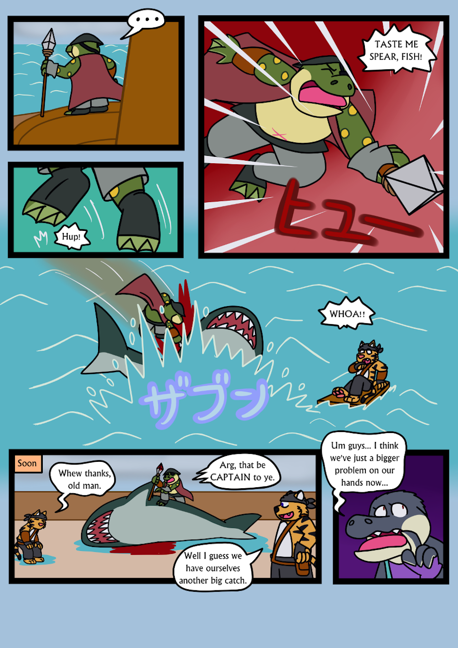 The fishing trip continues, but Mako and Auda are still distracted by their doubts and worries. Before anything's discussed, Gervas' ship gets a surprise attack!