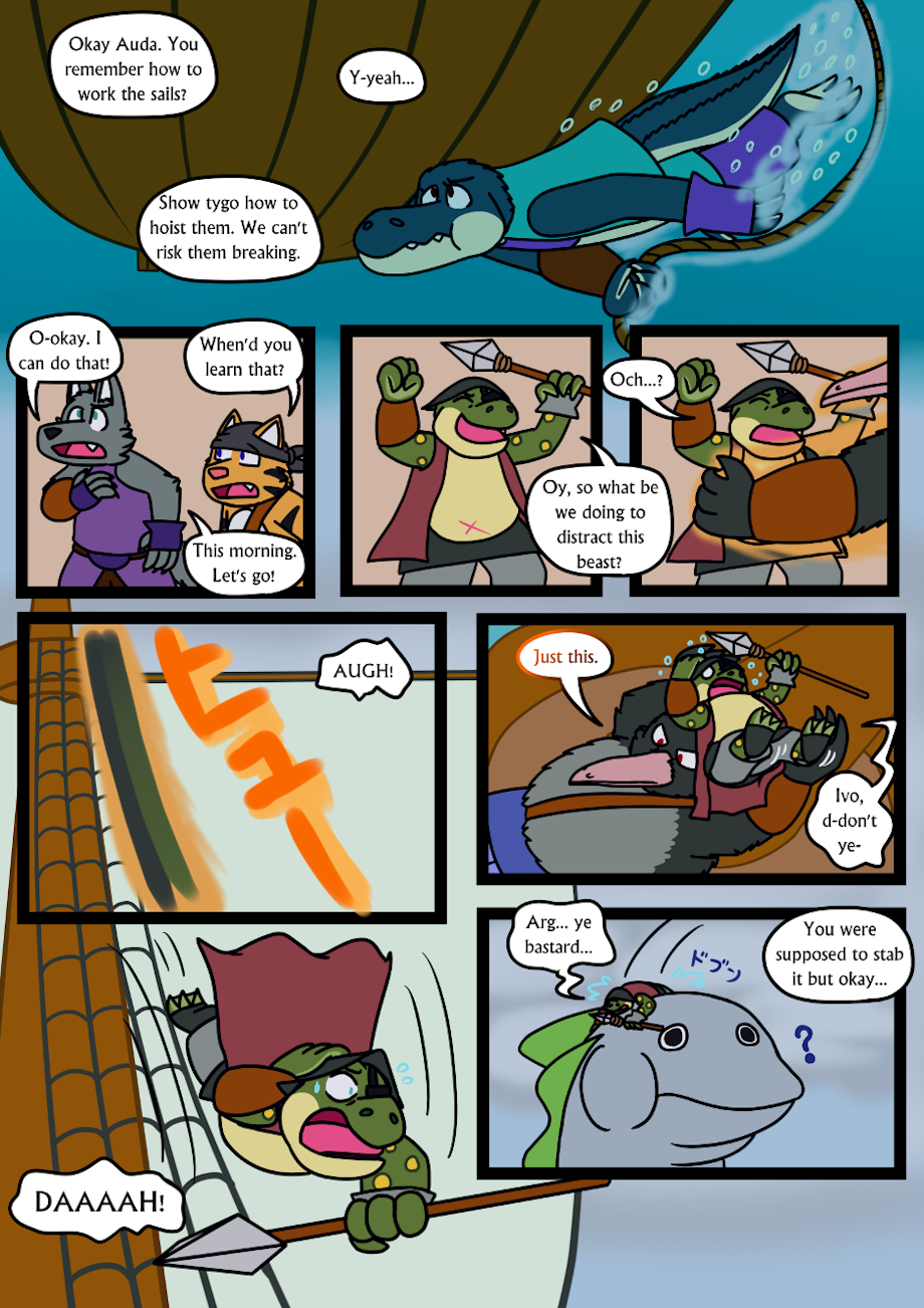 The fishing trip continues, but Mako and Auda are still distracted by their doubts and worries. Before anything's discussed, Gervas' ship gets a surprise attack!