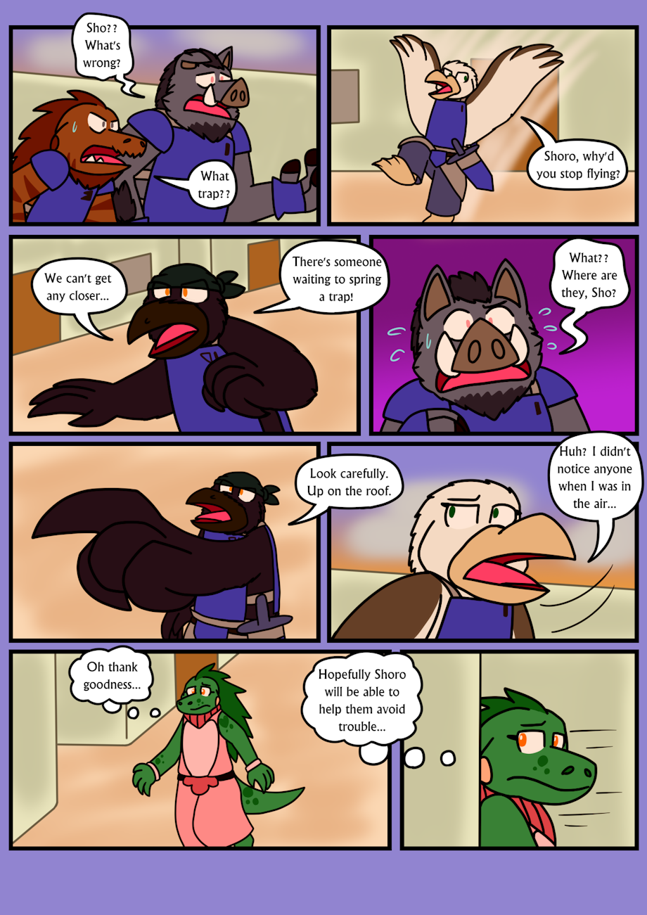 Cameos debuting on page 19 Kurt the Crocodile - randomthewolfskie on deviantART Gale the Eagle - nukeyfox on deviantART and johananp on furaffinity Isamu the Dog - blumasterblade on furaffinity