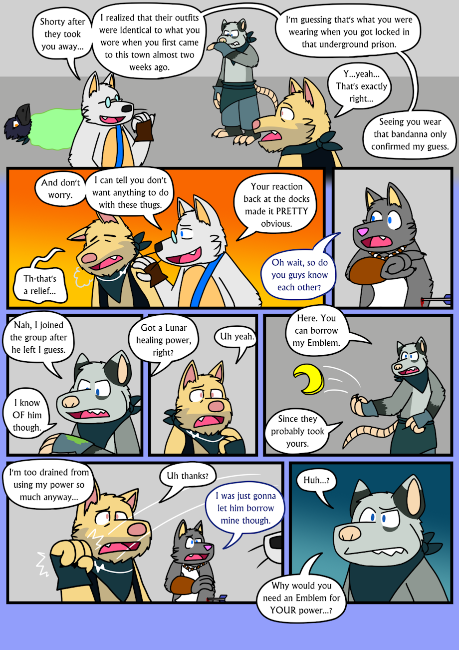 Cameos debuting on page 19 Kurt the Crocodile - randomthewolfskie on deviantART Gale the Eagle - nukeyfox on deviantART and johananp on furaffinity Isamu the Dog - blumasterblade on furaffinity