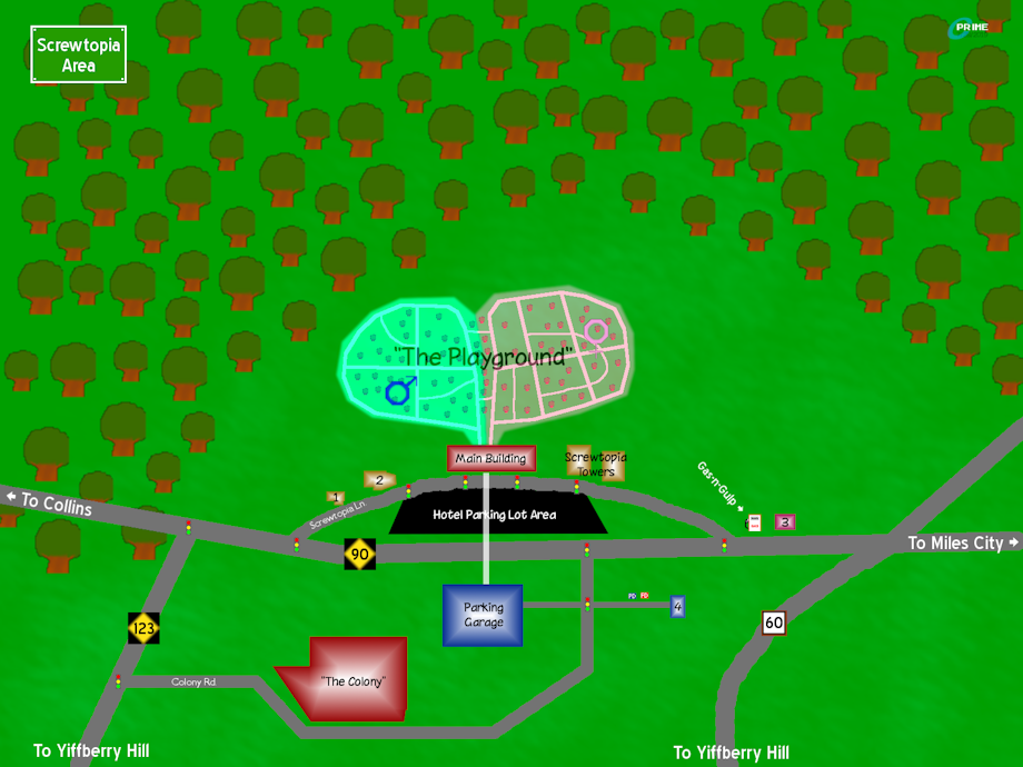 It's been a while since I made the original Screwtopia map, and looking back on it I wasn't too thrilled about it.  Therefore (and since I've added new places to the original map), I've decided to remake the map.  This probably will not be the last of my old maps that I end up remaking though.
