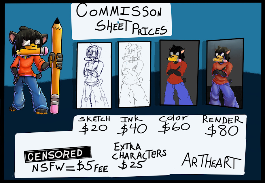 Hey guys! Ever wanted a commission from me but didn’t know my prices? Well feast your eyes on this! I worked really hard on this and hope you all enjoy it. Patreon members get a discount and can pay $60 for a fully rendered piece.