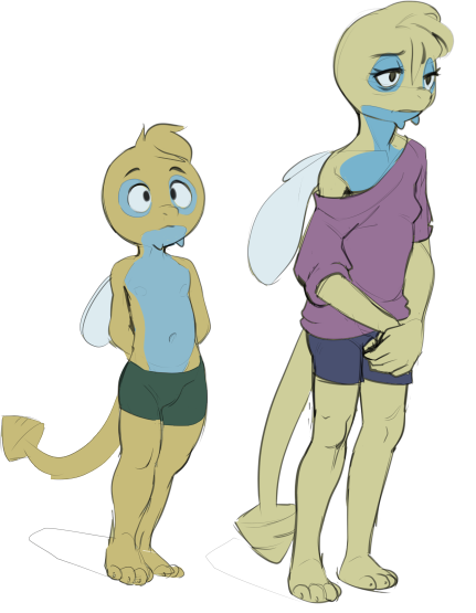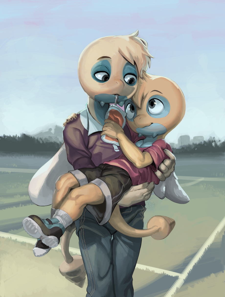 Her name is Bleu, single mom. Being a parent kept her too busy to continue her education, and her crummy restaurant job pays pretty terribly, but she considers herself lucky to have such a helpful, positive melon-headed little kid.