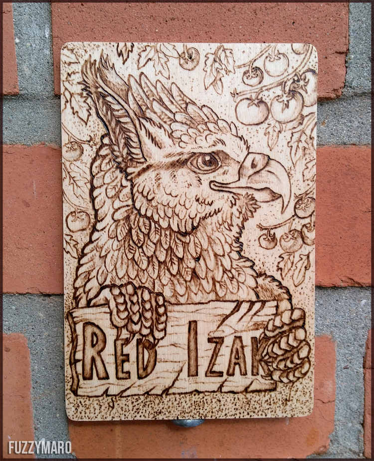 Wooden badge for Red Izak (pyrography)
