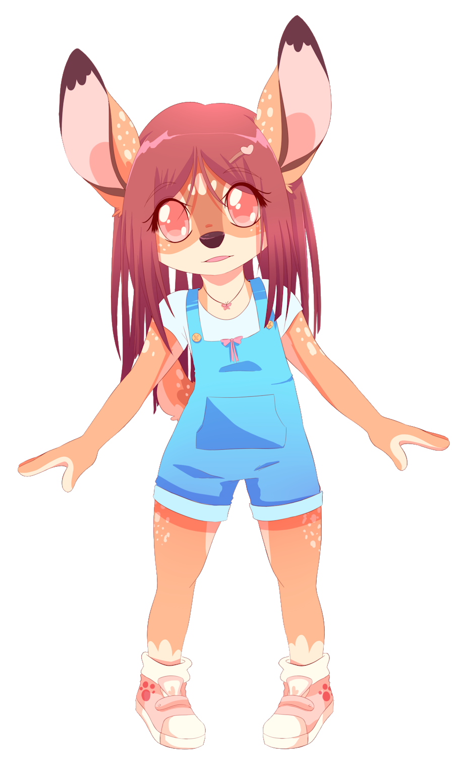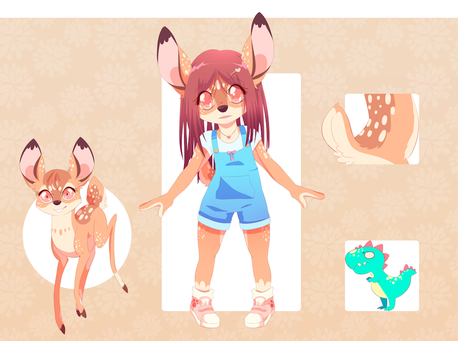 Belle/a's body is that of a young humanoid figure, but she has hooves in lieu of toes, despite her feet being more plantigrade. everything else except the face is humanoid in form.