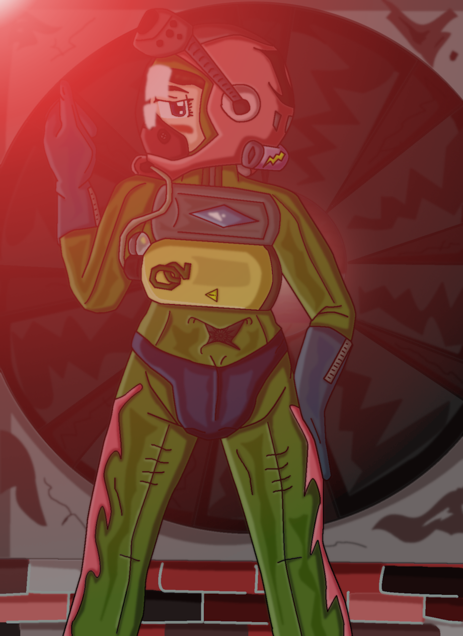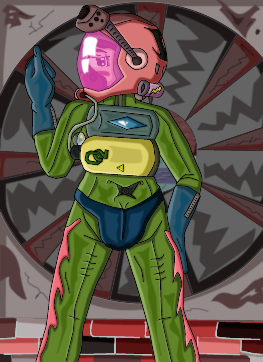 A piece of art I made for Dannimon-Design on DeviantArt. His character Brenda wearing a suit and exploring the sewers underneath File Island.
