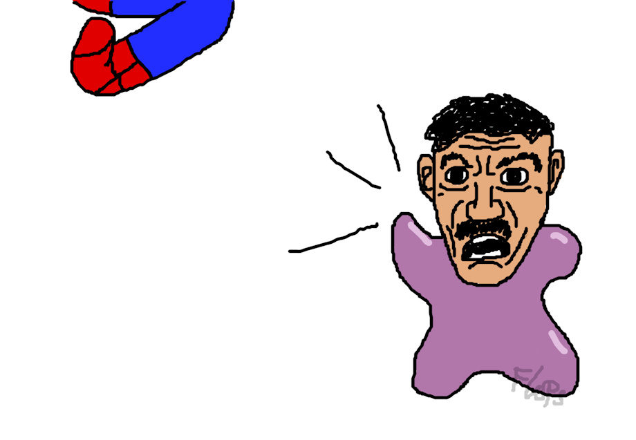 a comic i made as a reference to a meme from my twitch gaming channel. I was playing spiderman ps4 so if you played this game you might understand this better. Basically, spiderman has a habit of thrusting everything if you haven't noticed.