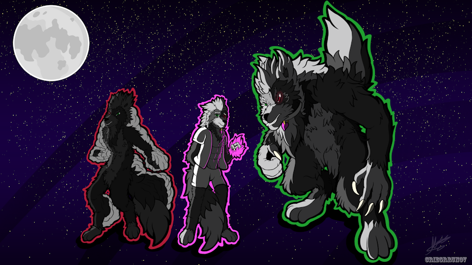 Pic for my wolf plushie, both in his normal and beast form, accompanied by his specter friend.