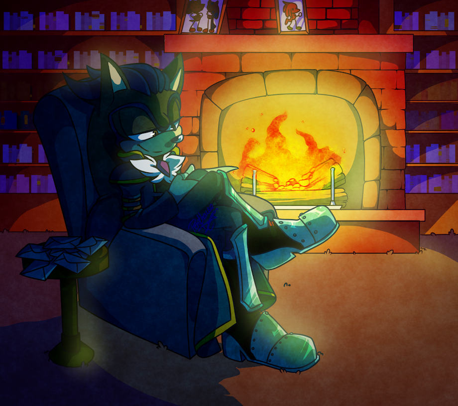 of their oc Carmana, reading some letters by a fireplace!