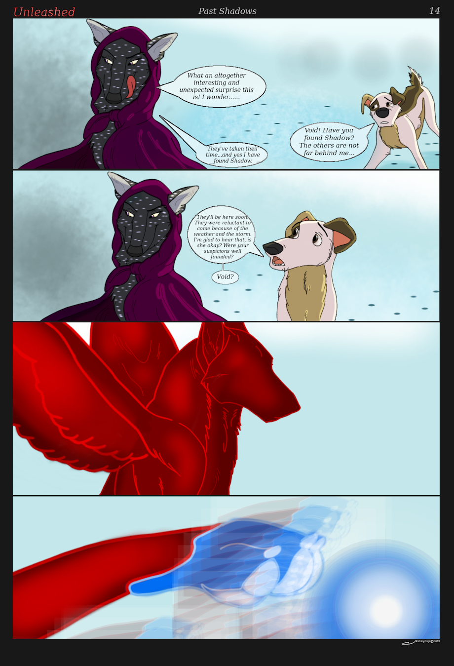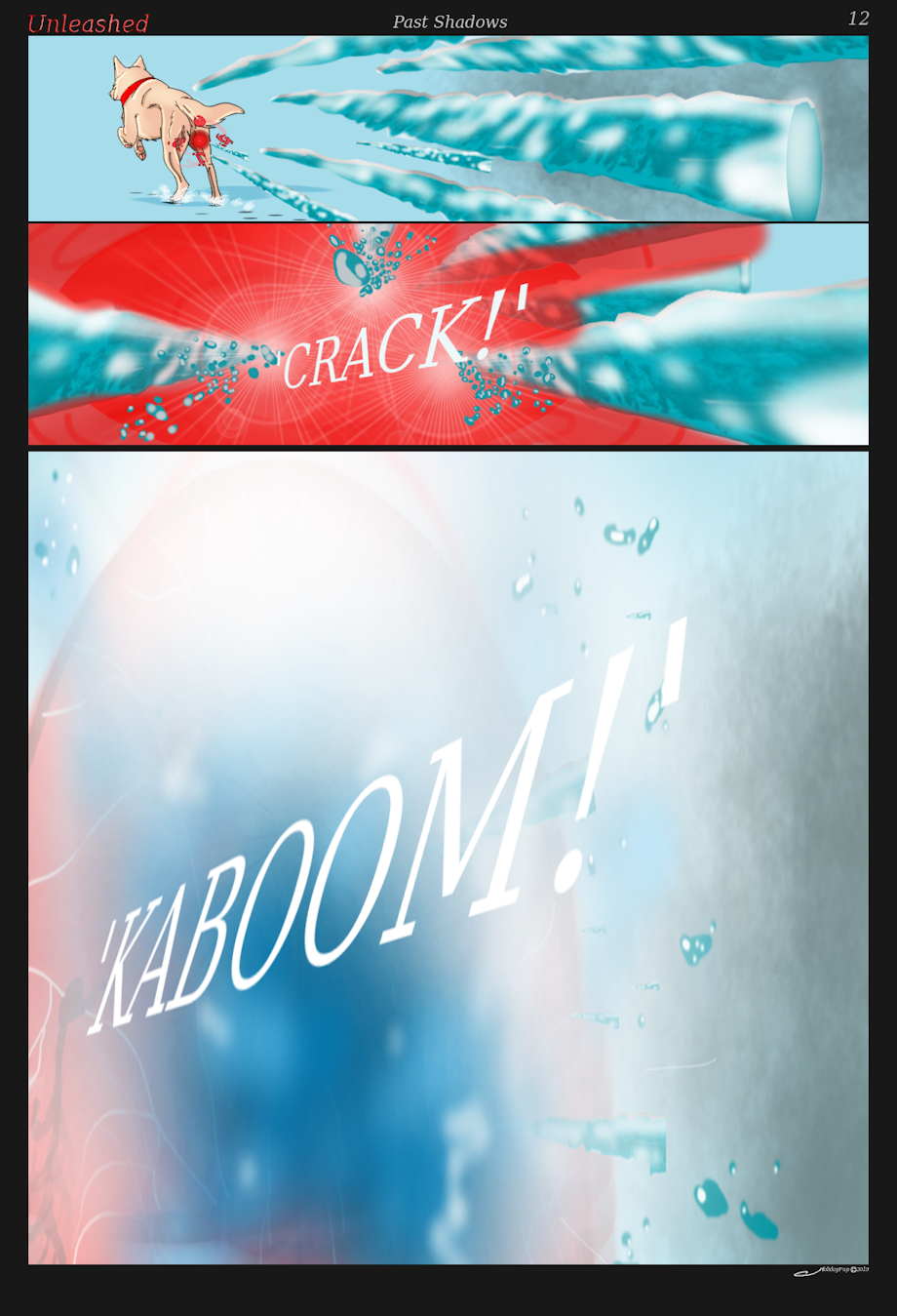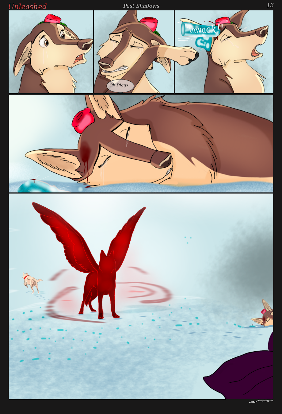 So i think this new red figure appeared and tanked the ice missiles, and our lady dog was hit in the head with some shrapnel from the resulting explosion.