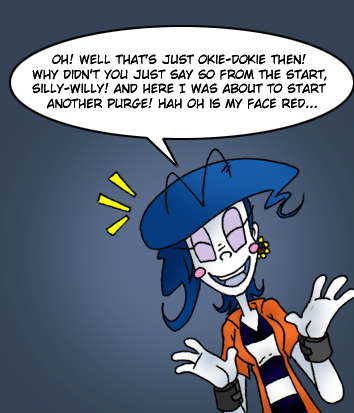 Pandora seems to really hate the possibility of being wrong, and being argued against, and being contradicted. Was she some sort of serial killer back when she was alive, an irrational mental patient prone to violent outburst, or both? I'm leaning on that second possibility.