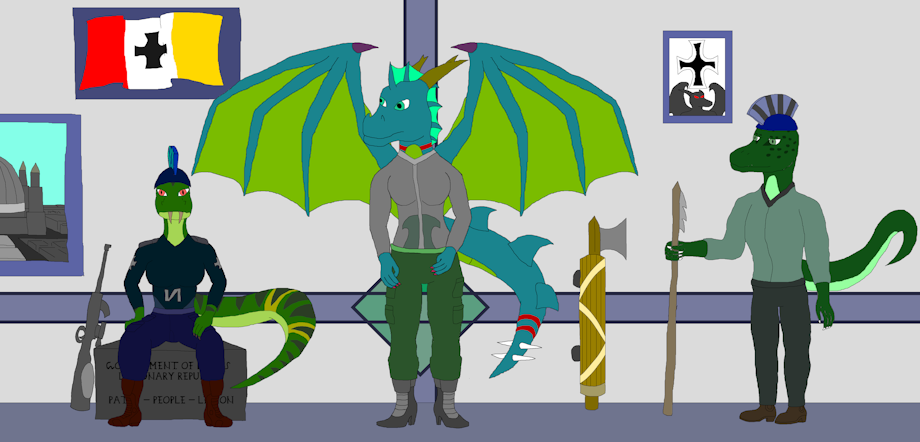 the new oc at the right is Pius, from Rumas and 2.13 metres tall, he is a gecko.