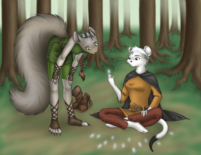 (Baksrit is the tallest of her siblings thanks to her pituitary shutting down later in her adolescence than normal. On the other hand, Deidrei is a little shorter than the average height of gray squirrels, although she's still taller than the average red.)