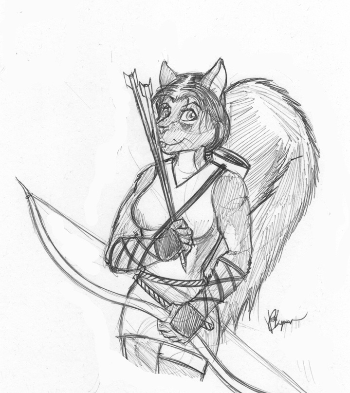I think Jinx may have made Deidrei's thighs too long, thereby skewing her height. Her pelvis should be more down around where the hem of her tunic is now. I generally see Deidrei as being roughly an inch or so shorter than Baksrit , putting them somewhere in the upper 3-foot area, perhaps close to 4 feet.