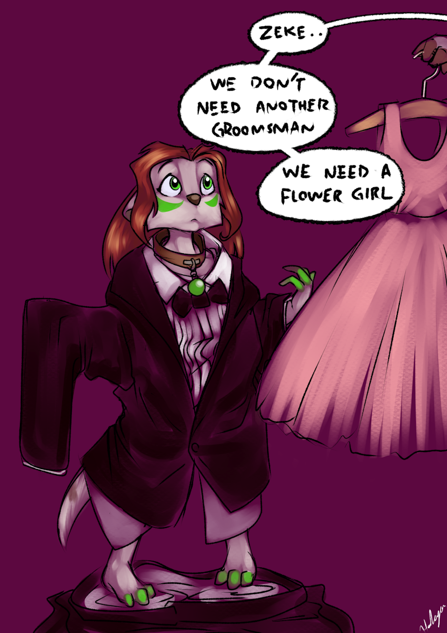 Change of plans, Zeke. You're getting a promotion in our marriage ceremony! You lucky girl!