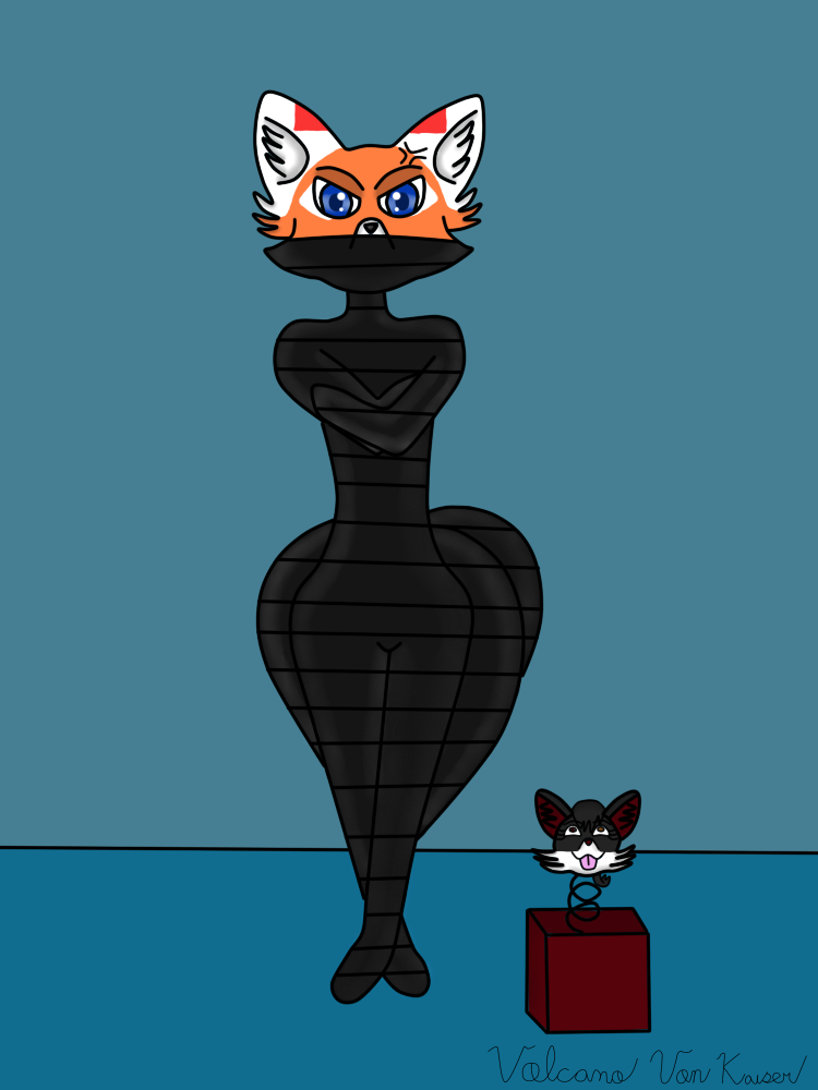 Chris opens the present from Volcano, but turn out he has been tricked! When Chris open the box, the latex wrap ties him up as a head pop out as a jack box with tongue stick out made after Volcano.