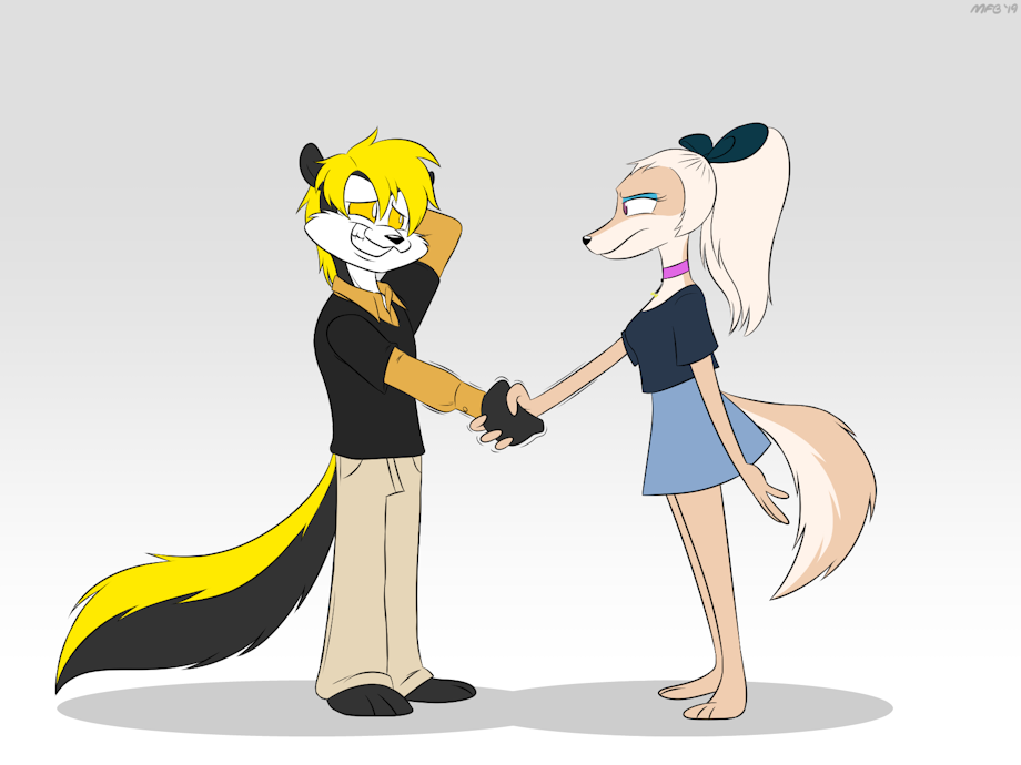 A formal greeting between Eddie III aka "E3" and Mia III aka "Biscuit". Formal, yet awkward.