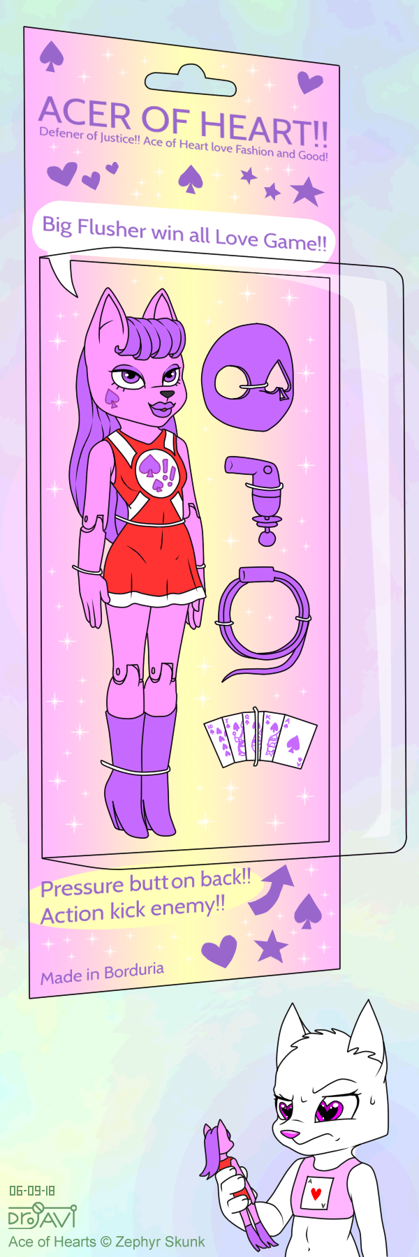It's both an honor and an insult. The Ace of Hearts (full picture's on my account) is a superheroine of sorts, who handles a single city (in a setting where superheroes aren't, normally, real). She's become so well-known that an action figure has hit the market... but it's nowhere near an accurate rendition.