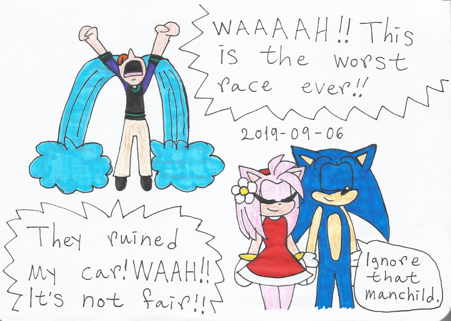 Crazy boy -_- Sonic, race with me, I'm only number 1 - what the heck Sam?!?