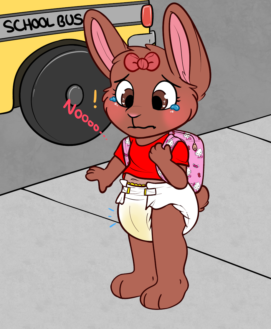 *hugs Amy* Take care, little one. Hope you have a good first day at school without any incidents. *notices her nappy* Oh...