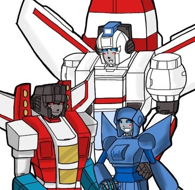 Starscream and Skyfire with Sonar(OC) my character. A picture of the three of them together before Skyfire and Starscream trip to outspace.