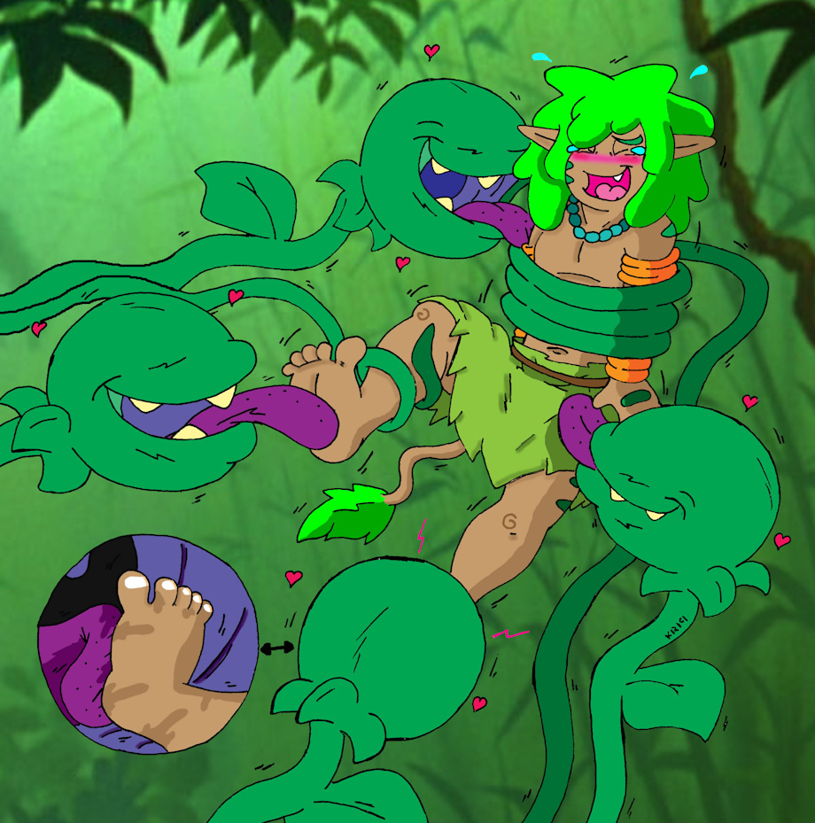 Apparently it doesn't matter if he's a Wood Sprite or not; The plants will tickle and tease him regardless! x3