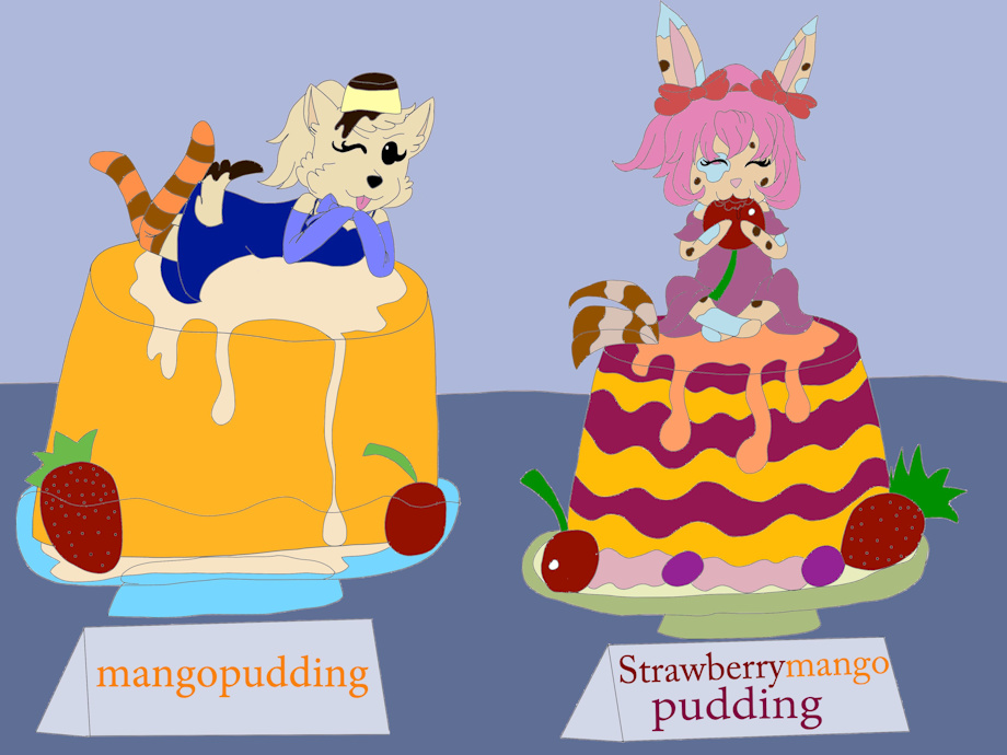 "but it’s so yummy I can’t stop eating it x3....>W<; noooo I don’t wanna share this pudding with them it’s mine...!" :o