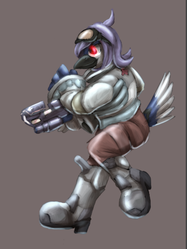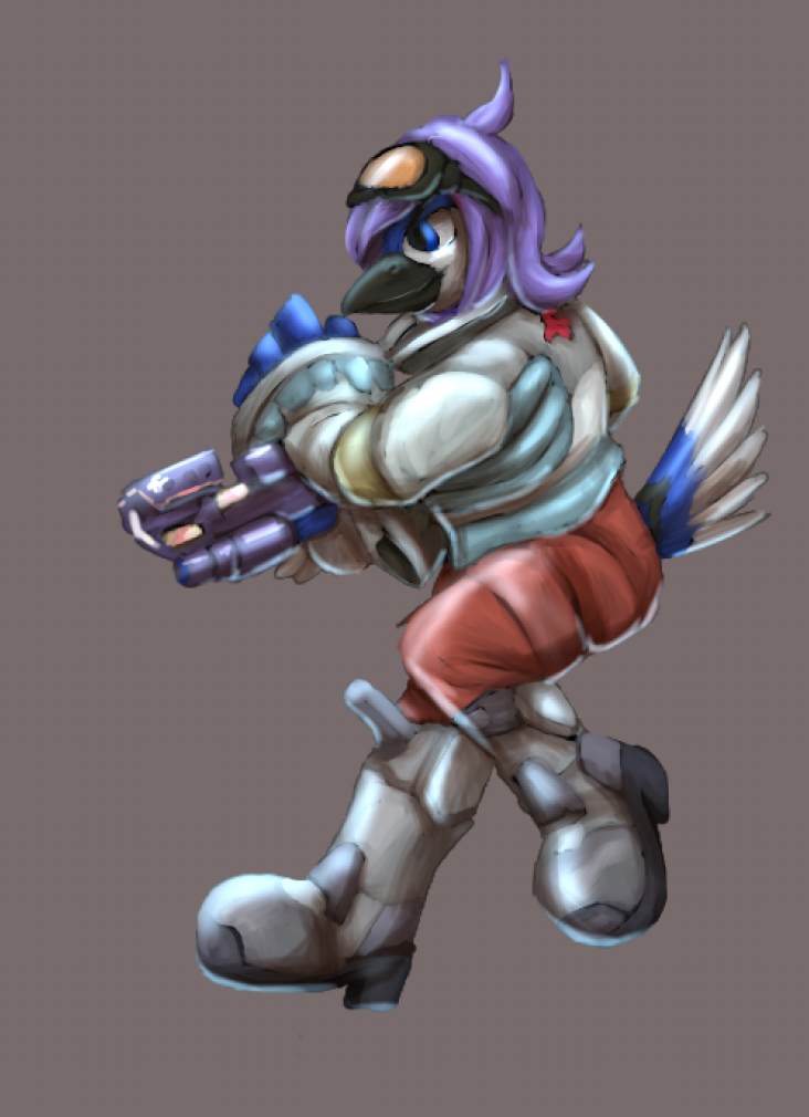 First up: we have Jayson my bluejay, getting to dress up as his idol and favorite avian space-ranger Falco; blaster and all. His usual cheery and bright self complete with goggles.