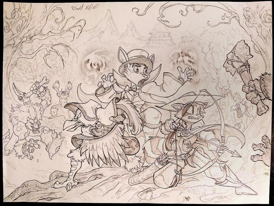 That thieving vulture has done it again, and landed the three of them in hot water! Let's hope the D20 is kind to these adventurers- commission for the delightful Relaxing Dragon at Furry Migration this past weekend.