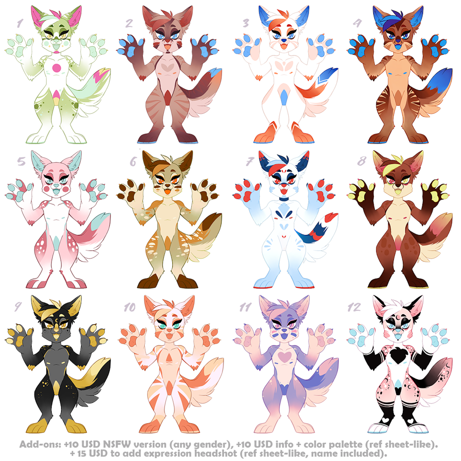 Add-ons: +10 USD NSFW version (any gender), +10 USD info + color palette (ref sheet-like).