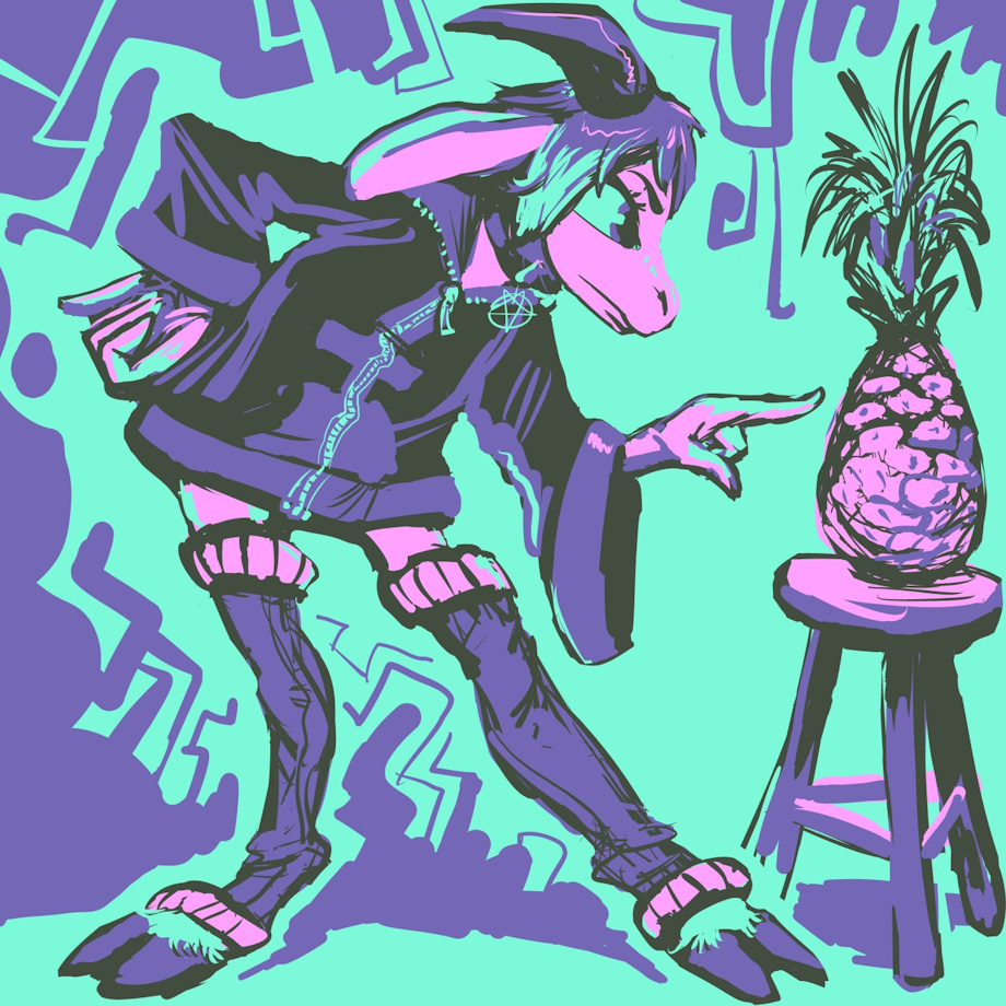 free sketch #27⅝: furriousity 's character Belial has a few harsh words for this pineapple.