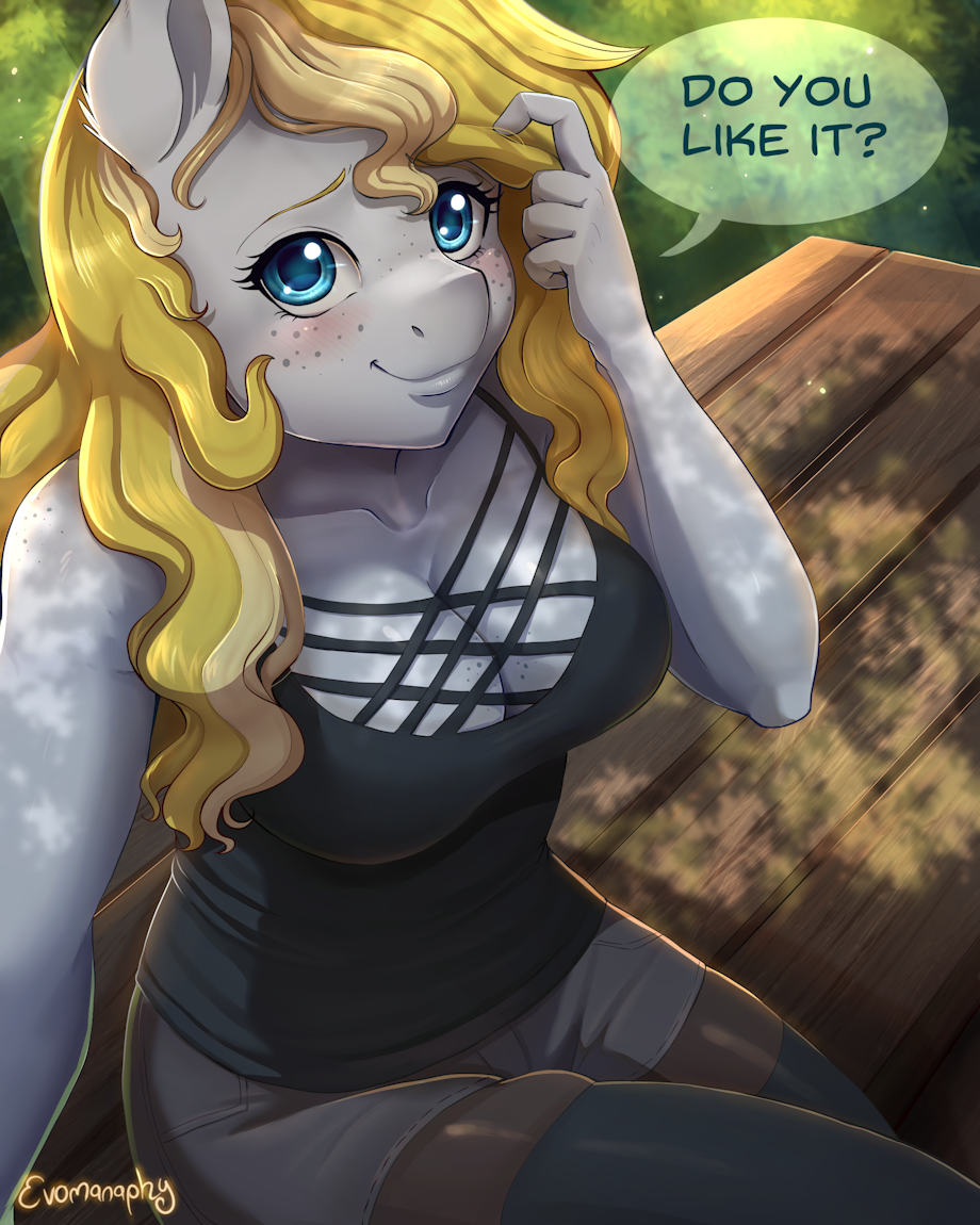 So I've gotten myself a new tank top recently and decided to make a little doodle of Evo wearing it. Originally this was just a rough warmup sketch, but thanks to one of my patrons I got to fully render it since they ended up liking it so much :D So a big thanks to them for giving me this opportunity ♥