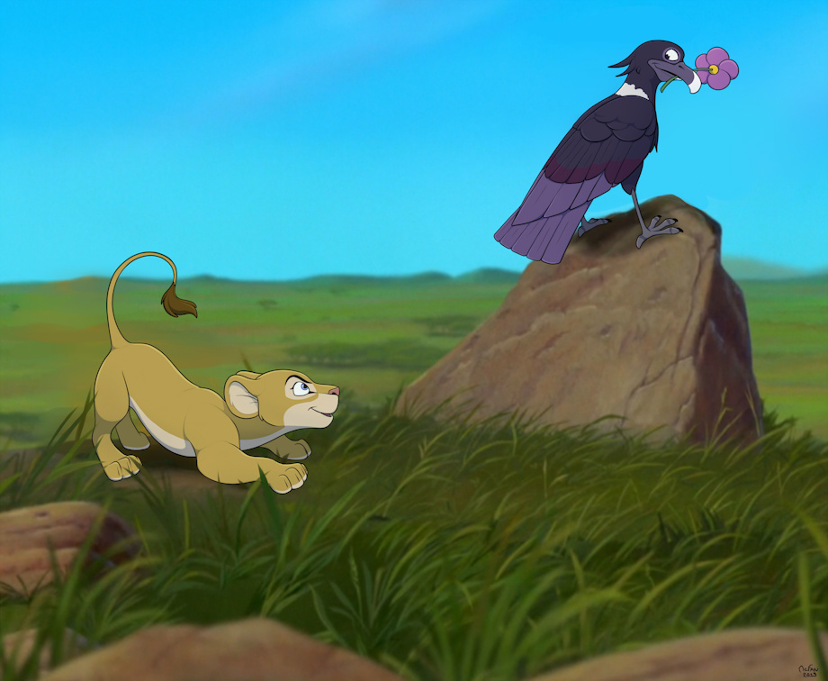 A commission for Neouka! Kimani, the cub lioness, is trying to get back her favorite flower from Ukuhleko. But the bird is just playing around with her, and won't let her surprise him that easily! Some rare SFW pic from me, doesn't hurt from time to time ^v^