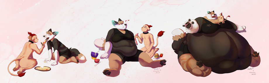 , she did the rough sketch and the flat colour, I did shading and linework! My character feeding hers....completely platonic of course!