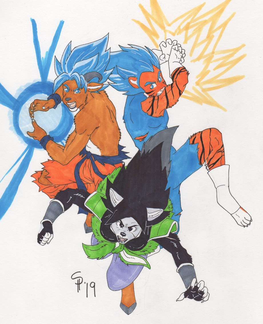 I did the best I could with the colors I had at my disposal and like how it turned out all things considered. So here I have Benjamin as Goku and a not seen much Dimitri as Vegeta. Sybil as Broly.
