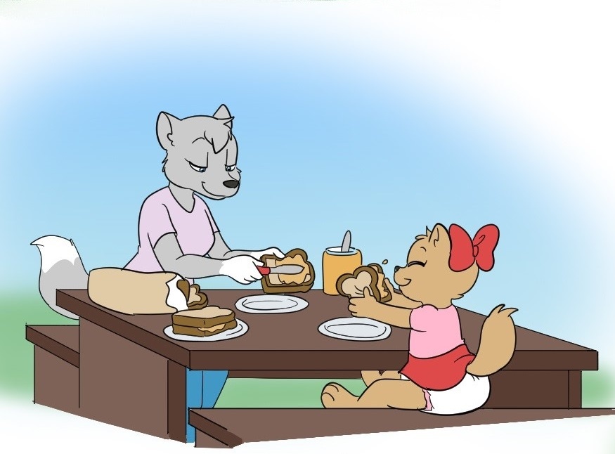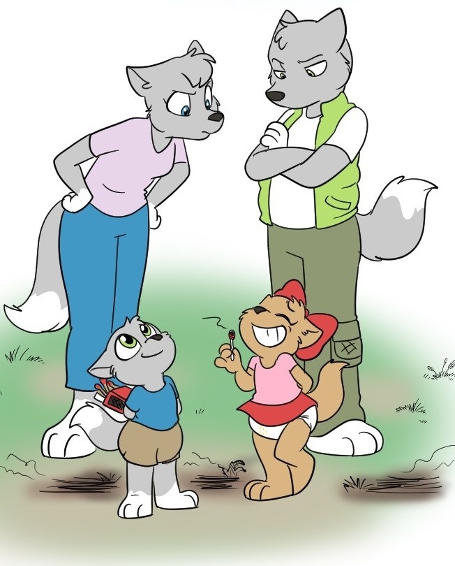 After a failed, but valiant effort, to try and puppy dog eye and explain their way out of almost burning down the forest, Caiden and Tabi were instructed to go pick a switch and bring it back to Cheryl. Both cubs knew what them meant and nervously looked through the brush for the "perfect" switch that wouldn't hurt too bad.