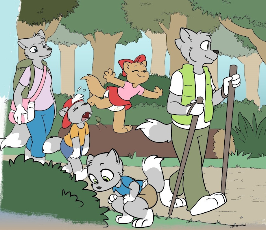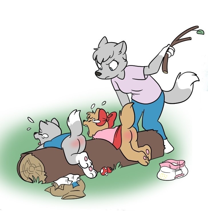 After a failed, but valiant effort, to try and puppy dog eye and explain their way out of almost burning down the forest, Caiden and Tabi were instructed to go pick a switch and bring it back to Cheryl. Both cubs knew what them meant and nervously looked through the brush for the "perfect" switch that wouldn't hurt too bad.