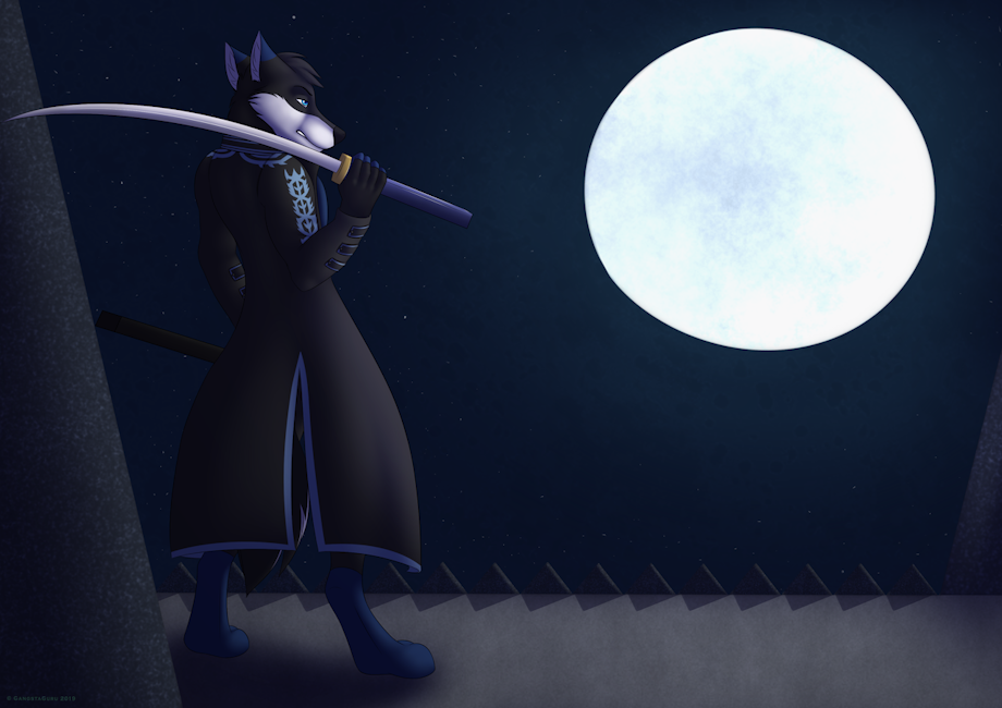 He's dressed up as Vergil, who I believe is from the Devil May Cry games? I don't know, not much of a gamer to know these things XP