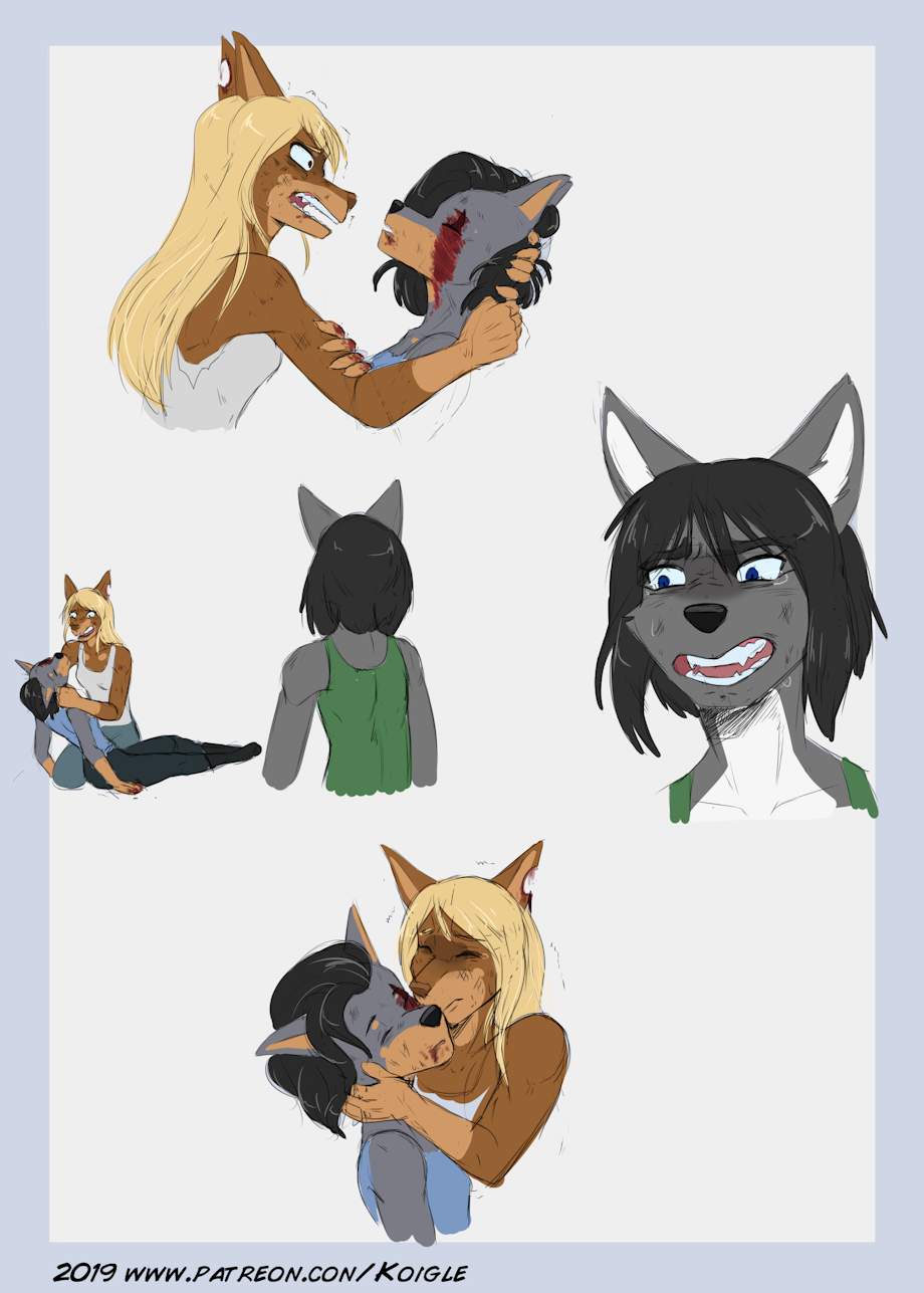 More drama filled sketches. Getting more of a feel for a very intense scene from Catherine, Morrigan and Rue's backstory
