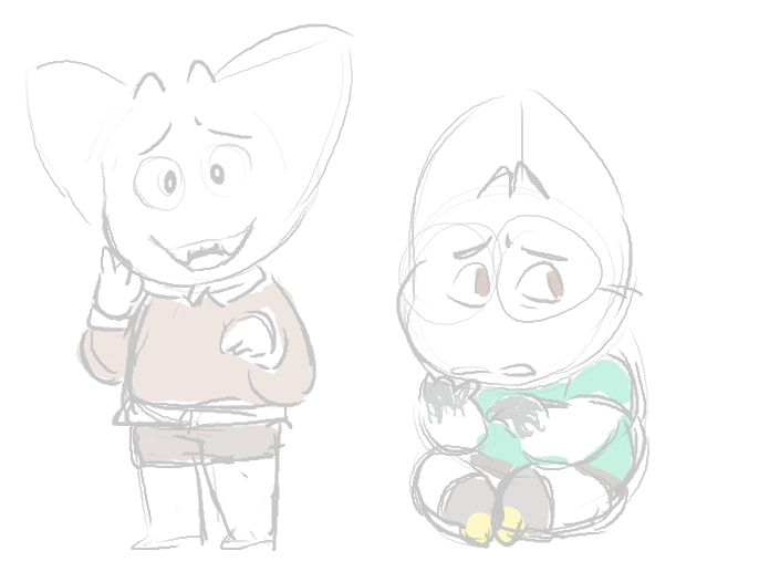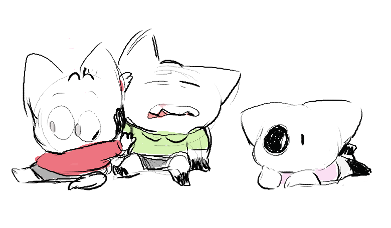 i've actually had one and two for a while!! they're just the most modern version of my sona, which had various stages in design. i did a series of drawings to map the progression of them... at the very beginning, my sona's name was "willis" and he was a helpless, armless demon! he's constantly melting, crying, sweating. then there were some in between stages of building on willis, before i reached the point of splitting him into two parts. and after that, he felt very right!!