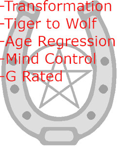 Once Austin got to the bathroom, he closed and locked the door and checked the mirror, his mouth dropped and that binky he had just put in his mouth. His head looked...just wrong to him! It looked more shaped like a wolf’s own with triangular ears and a muzzle sticking out. Sure the fur was still his own color, but the rest of his body looked as wrong. He looked like he was maybe a teenager in appearance, no wonder he had to look up to Betty and Kitty- he was a good few feet shorter than them, his clothes were actually getting a little loose on him- it was a miracle he didn’t have to keep holding his own pants up, though the bottoms of those pants began to drag behind him. He was still an anthro true and true, but he looked far more like a wolf/tiger hybrid than a normal pure tiger. He wondered, if he truly was a wolf and tiger hybrid, then there would have had to have been other details that set them apart besides the fur and muzzle, right? For the life of him though, he couldn’t recall what else was different. He knew SOMETHING else was different, something important that he could just look over himself, but he just...couldn’t figure it out.